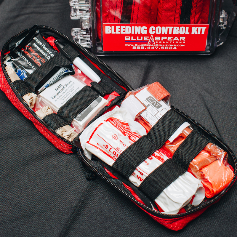 - Designed to provide essential equipment that empowers the general public to take action as immediate responders in stopping life threatening bleeding